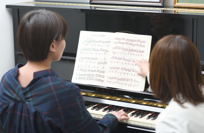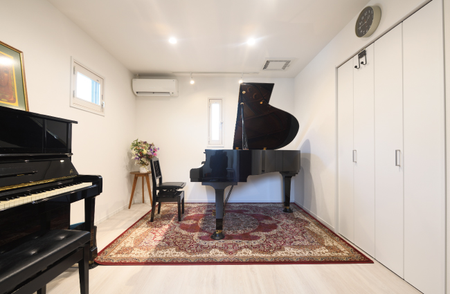 写真がなくても、音符や鍵盤といった音楽モチーフを用いることで、レッスンの楽しさや安心できる雰囲気が伝わるデザインに仕上げています。